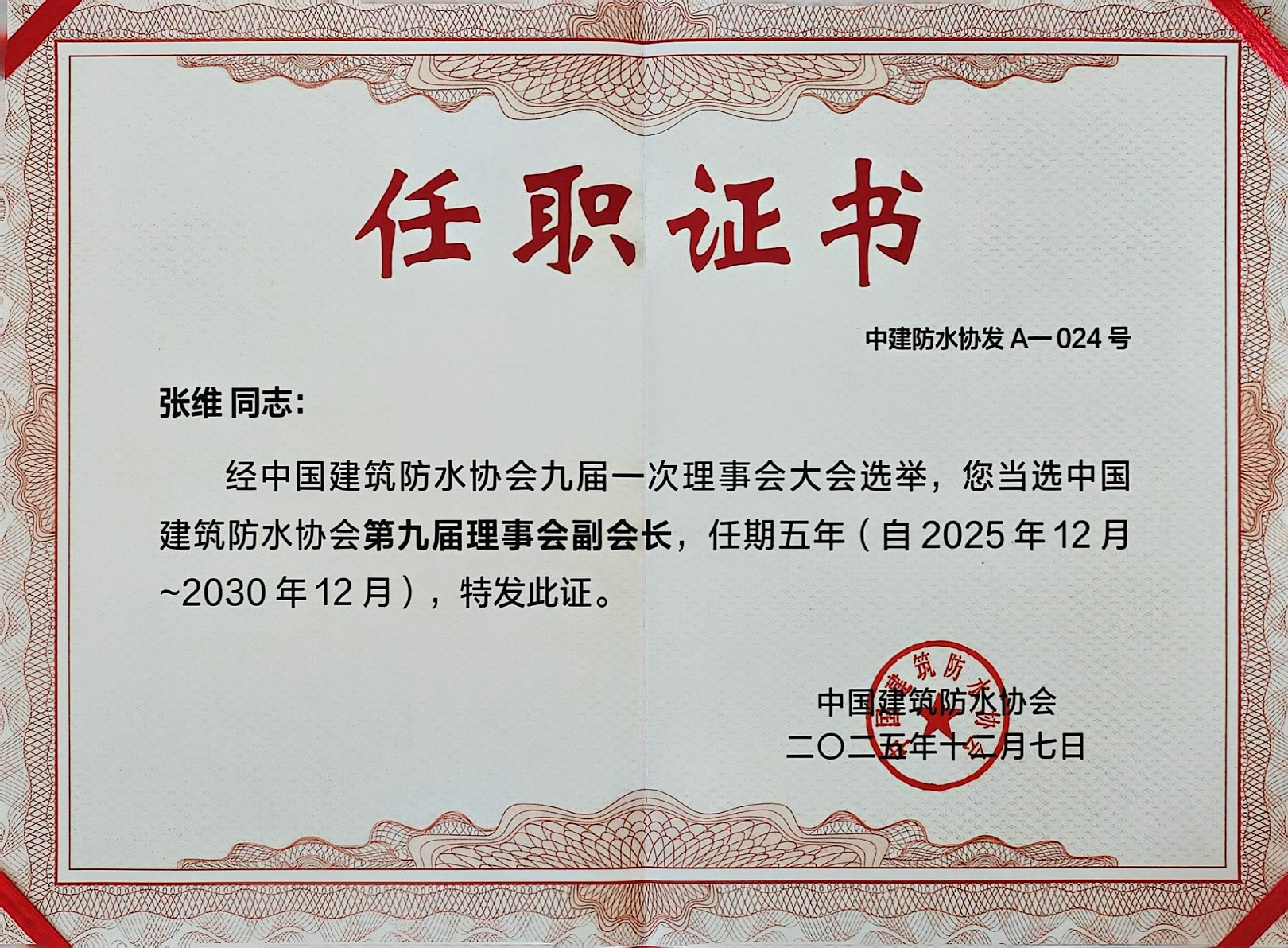 荣担重任 共创未来 | 湖北优布总经理张维当选中国建筑防水协会理事会副会长