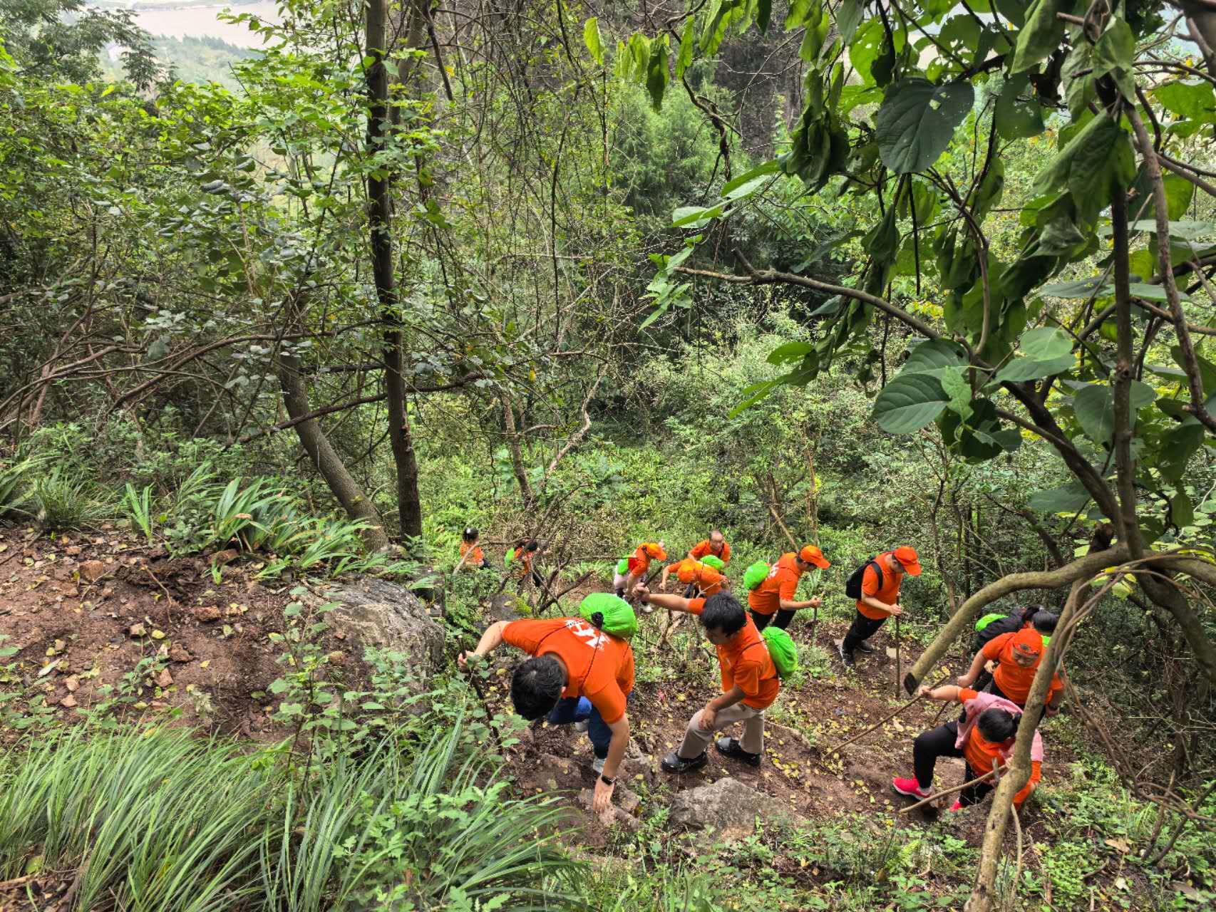 全程约11公里的自然山路,陡峭的爬升、湿滑的土路,未曾让我们退缩。一路上,队员们互相鼓励、彼此扶持。男生主动为女生分担负重,经验丰富的队员不时分享登山技巧,收队组长始终耐心陪伴、鼓励着每一位伙伴。汗水浸透了衣衫,但笑容始终洋溢在脸上,团队的温暖与力量在这一刻熠熠生辉。